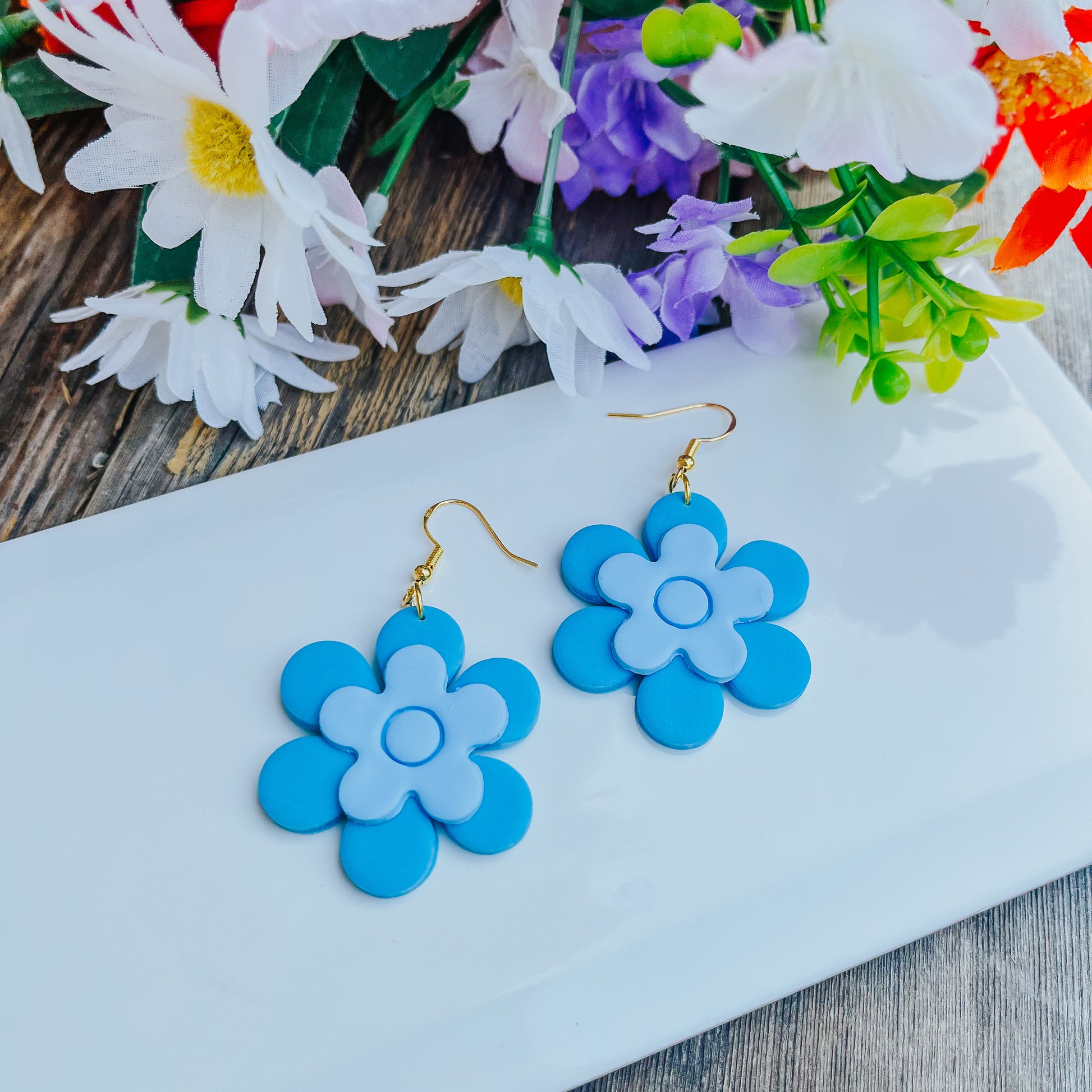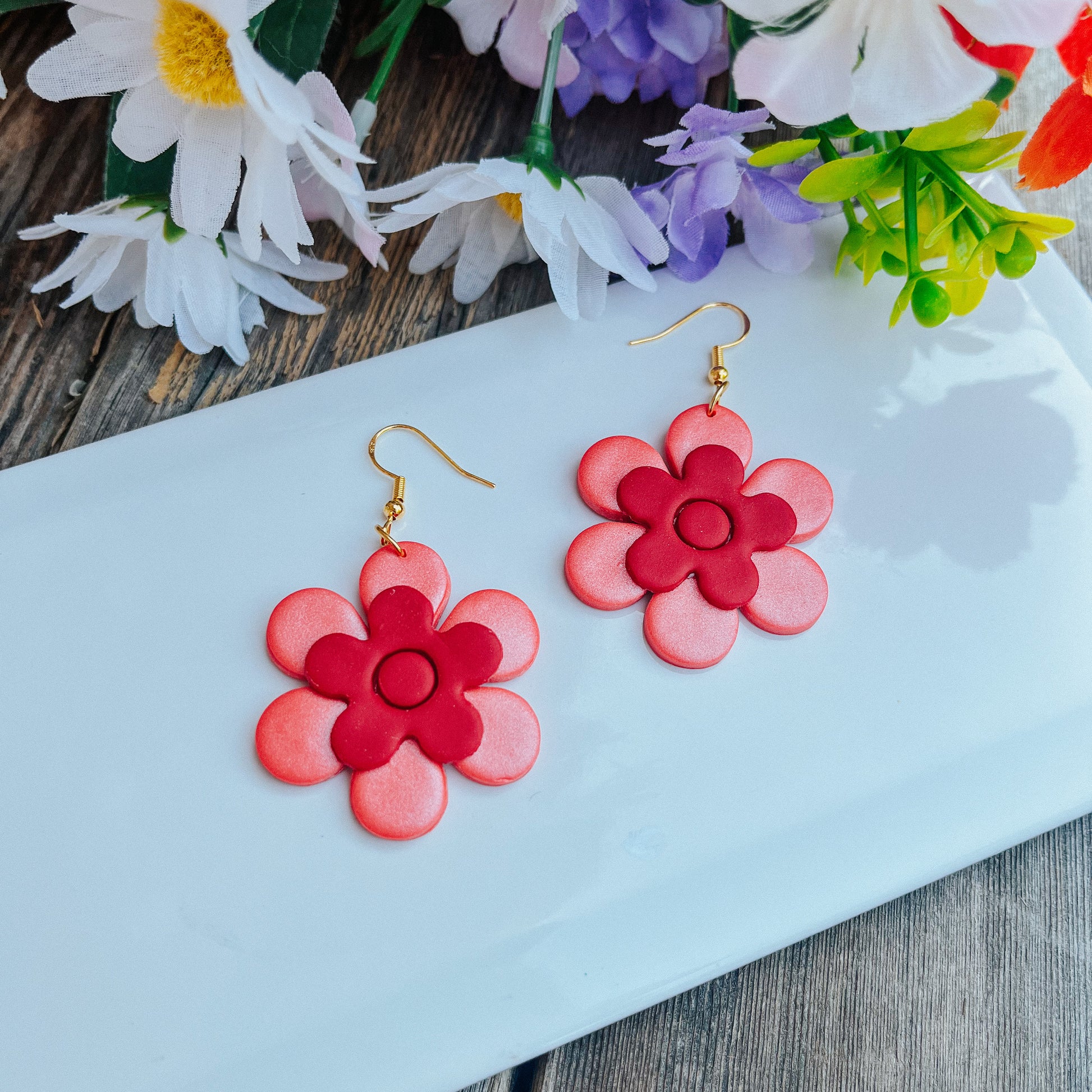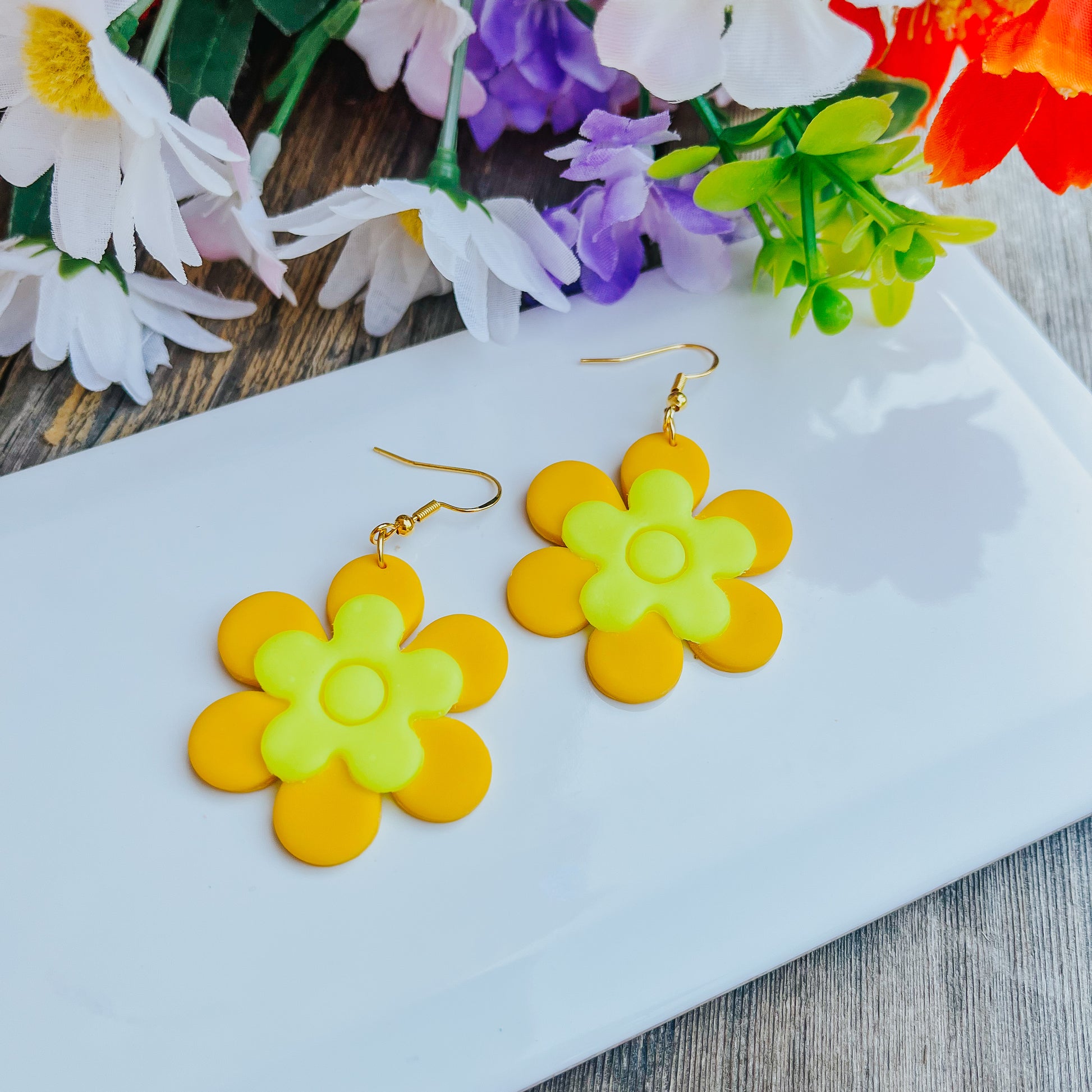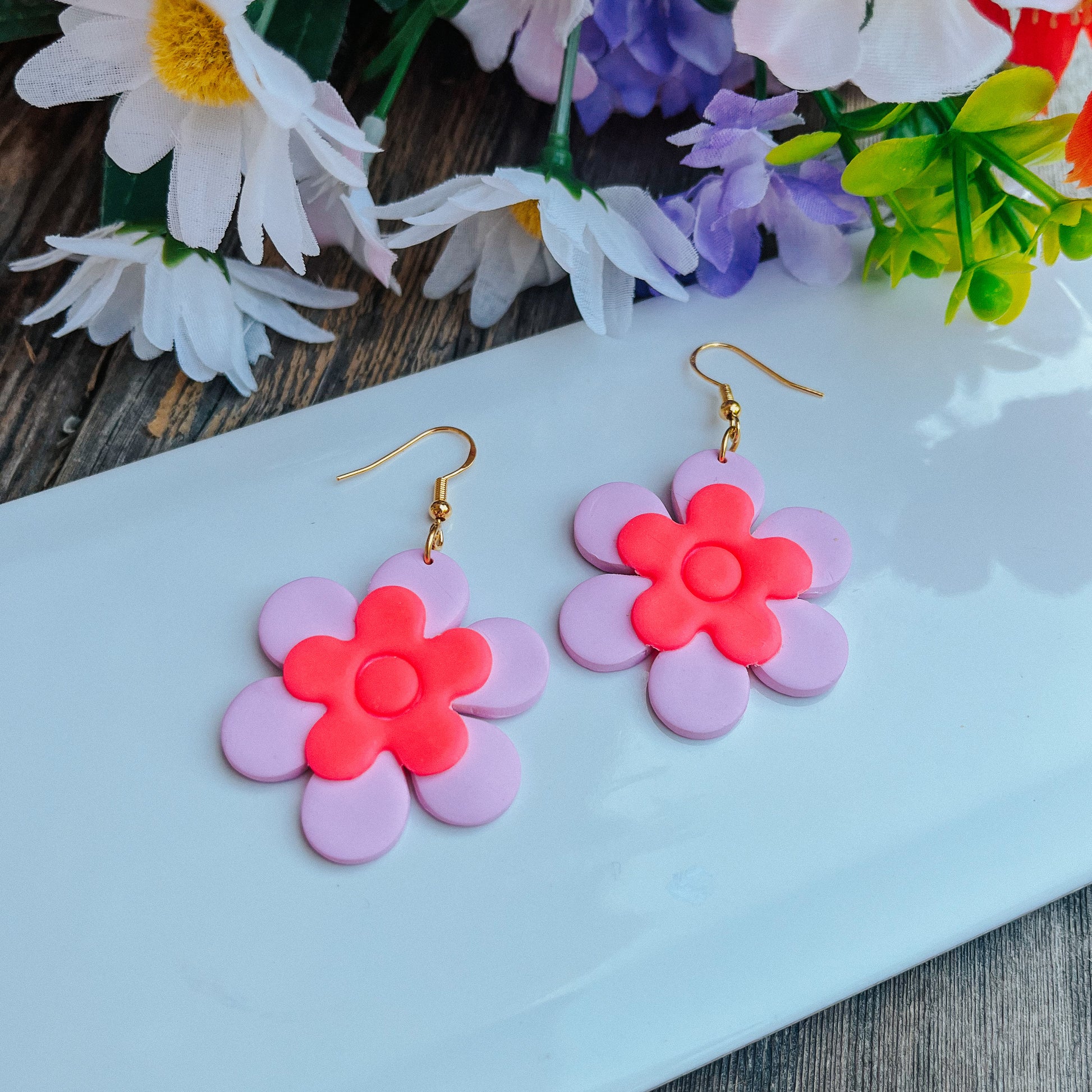 Choose from a rainbow of beautiful two tone daisy flower earrings. Handmade out of polymer clay and completed with your choice of gold plated metal hooks or anti-allergy plastic hooks. Please select your hardware in the notes section at checkout. If hardware is not selected they will automatically come with our hypoallergenic metal hooks.