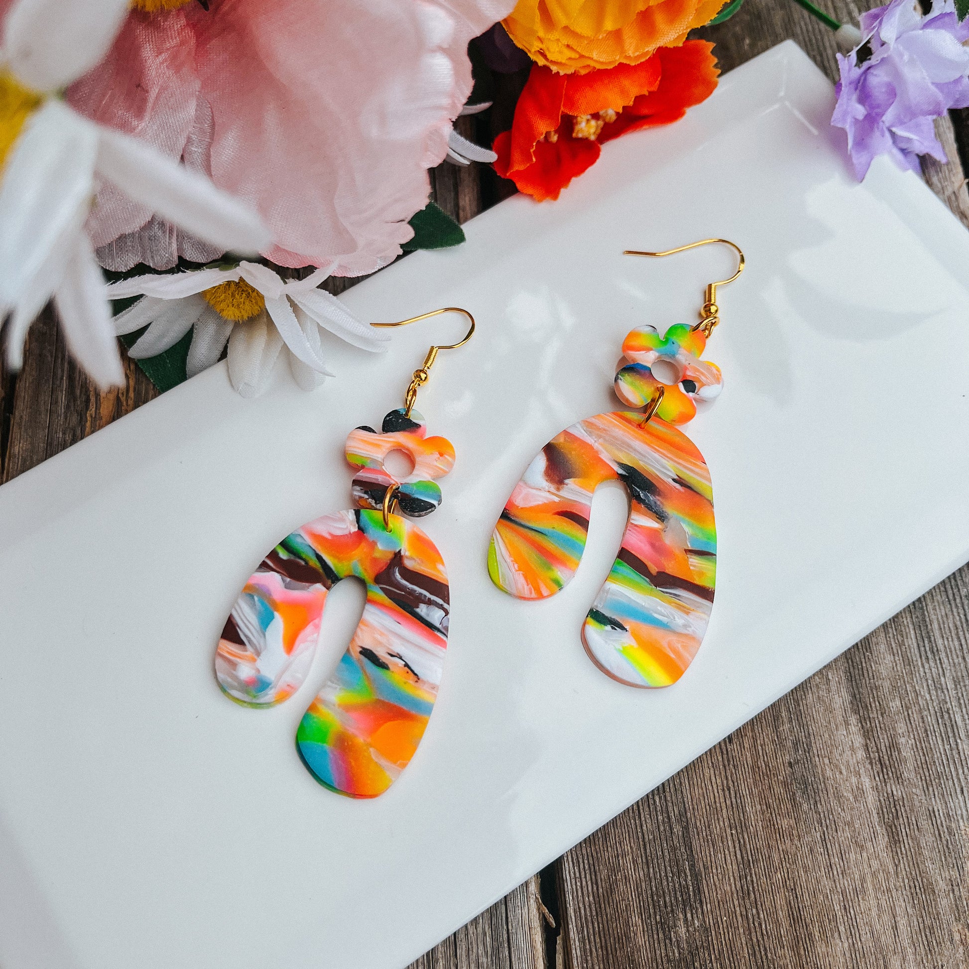 **Please note Polymer clay marbled pattern will vary with each pair of earrings and no two are alike due to the handmade nature of the marbled effect. Also colors may vary due to your settings on your computer or phone. We try are best to capture are products as true to color as possible.